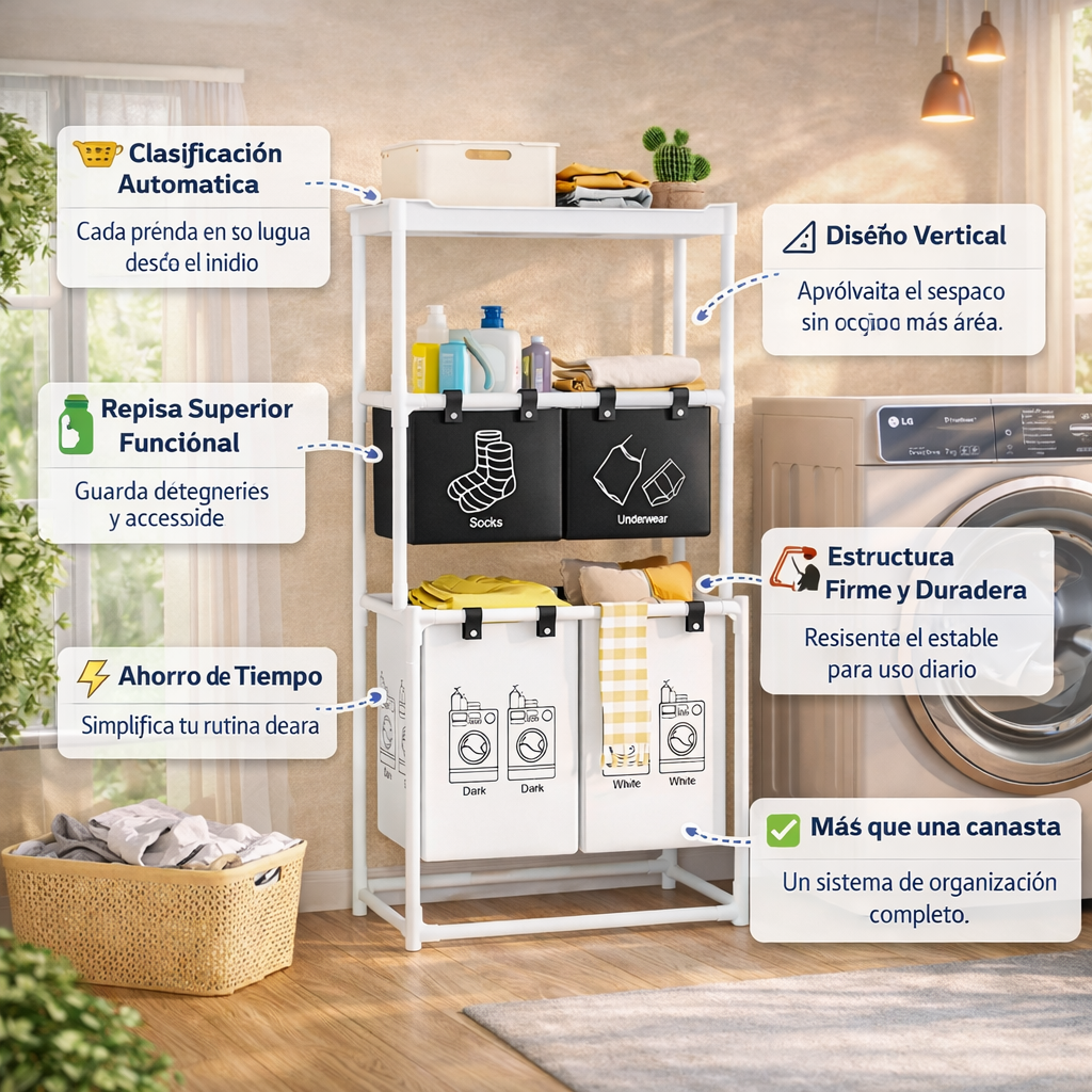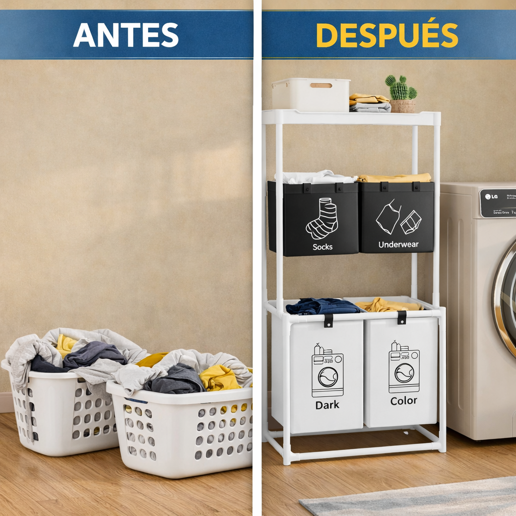 La ropa se mezcla, el espacio se ve desordenado y cuando llega el momento de lavar, pierdes tiempo separando todo desde cero.
