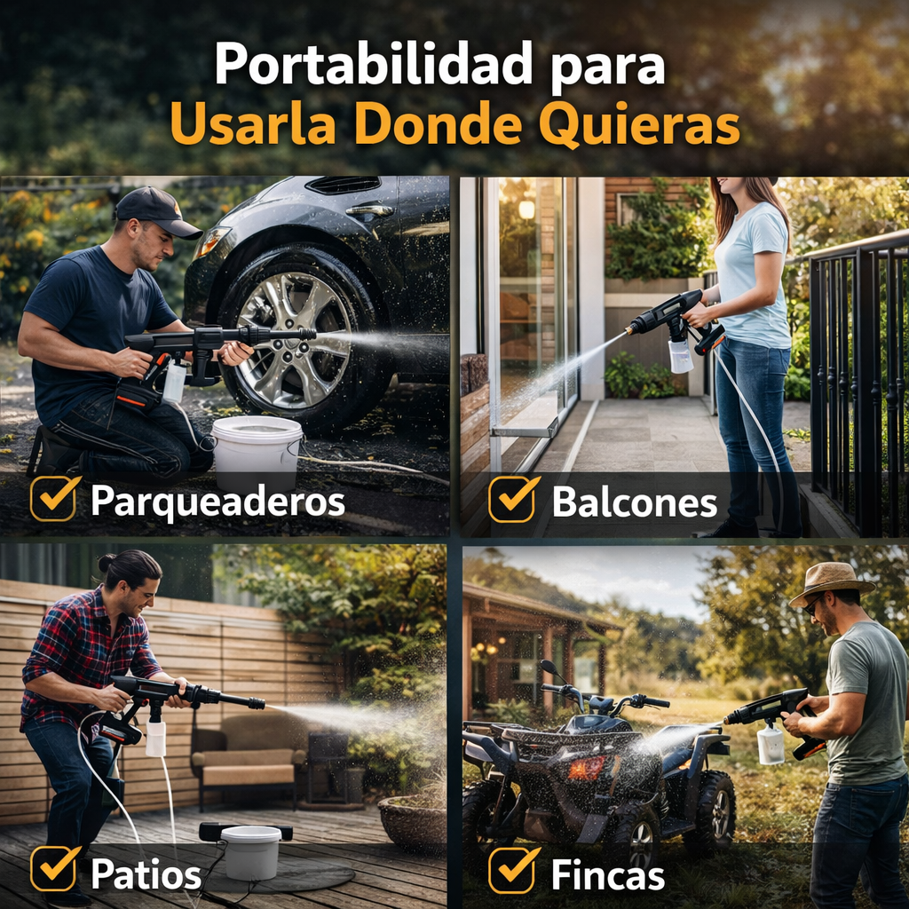 Sí. Es ideal para lavado de mantenimiento, rines, barro ligero y suciedad diaria. Para trabajos industriales o suciedad muy incrustada se recomienda una hidrolavadora tradicional de mayor potencia.