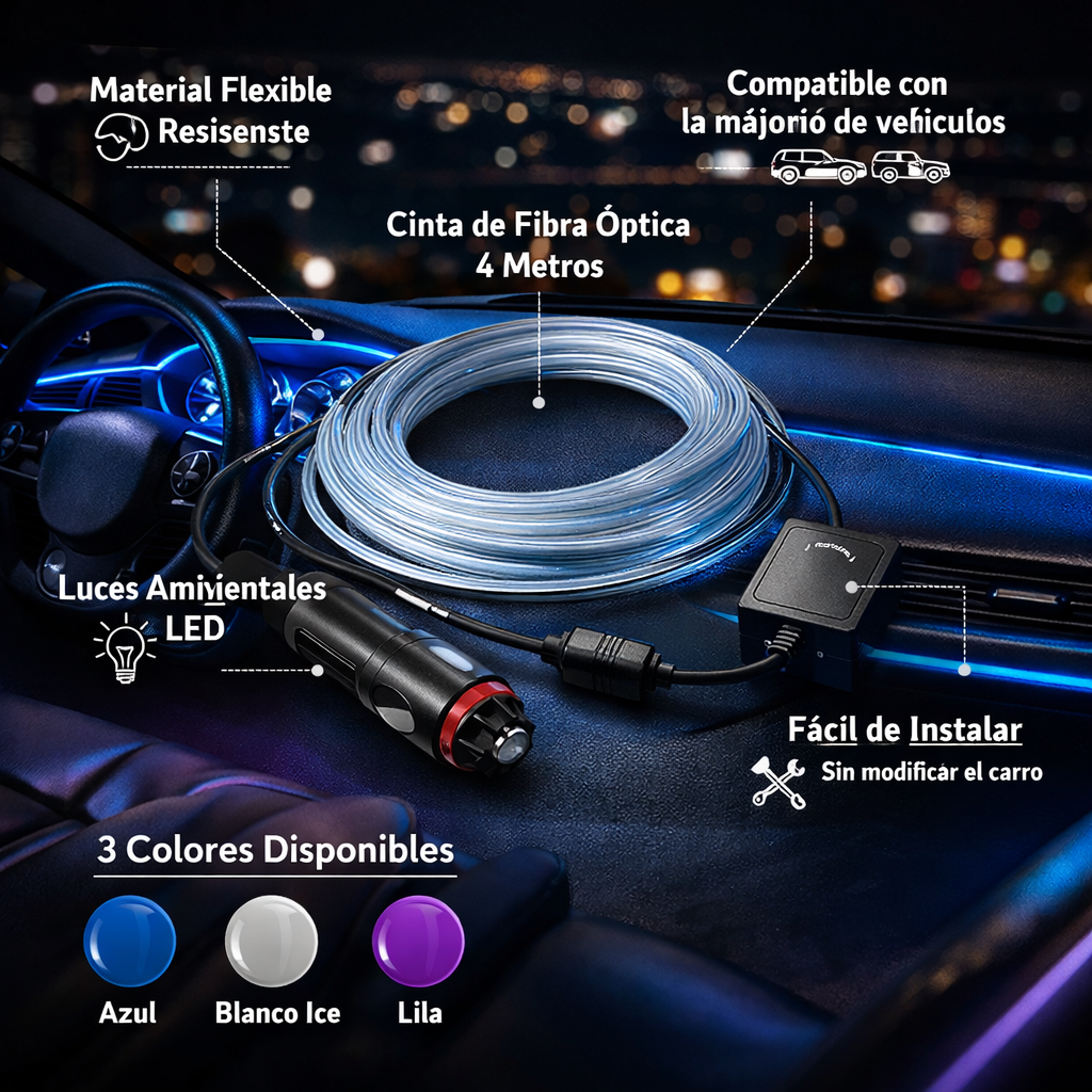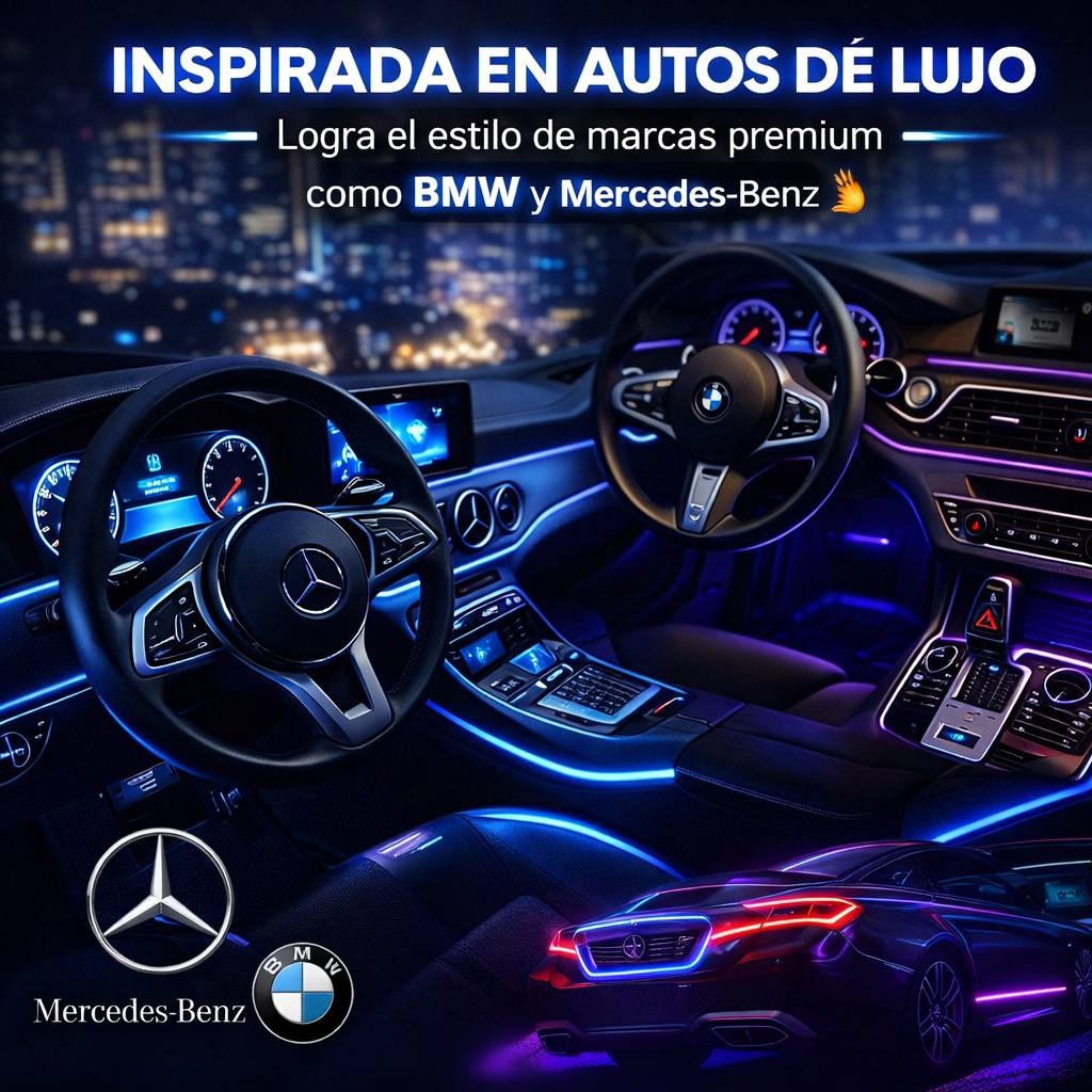 Cada conductor tiene su propio estilo, y ahora tu vehículo también puede reflejarlo. Con la iluminación ambiental LED de fibra óptica, puedes transformar el interior de tu carro y darle una apariencia completamente diferente, moderna y personalizada.